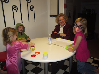 One of the best parts about having babies, is that my Mom always comes for a visit after I have one! (So I've decided to just keep having 1 each year to make sure I see her often! Just kidding Mom!!!)We were counting down the months, weeks, days, hours and minutes until G-ma & G-pa would be here to visit. They arrived on Thursday the 29th (Trav's b-day) and left on Halloween day. We had such a great visit- recieving gifts, shopping, going to dinner, making split pea soup & birthday cake, playing Bingo with the kids, playing Yahtzee, making play- do critters, making carmaled apples, going to the park with G-pa, watching the snow, going to the movies, folding a few loads of laundry, jumping on the trampoline with G-pa, making haunted houses, getting Sonic with my Mom, finding orange earings, playing with the kids, talking, Mom stealing donuts from their hotel for me, having Tristin & Daisy stay a night at the hotel with G-ma & G-pa, admiring Trav's amazing spider web, going to Target, eating taco salad, trying to get G-pa in the back seat of the van with the kids, introducing G-pa to Joss Stone, watching Trav show G-pa what the Internet can do, buying a new hair dryer & shoe laces for Brent, holding the baby, watching Grace change into/out of a thousand costumes and dress up clothes, reading stories, thrift store shopping, Mom buying me a new toaster, laughing and watching Grace watch the movie Mask for a hundred times! We had so much fun together, made more memories and are now excited for May when we can drive to Seattle for my brother's wedding! Thank you for everything Mommy!